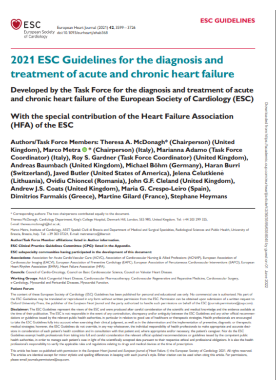 2021 ESC Guidelines for the diagnosis and treatment of acute and chronic heart failure