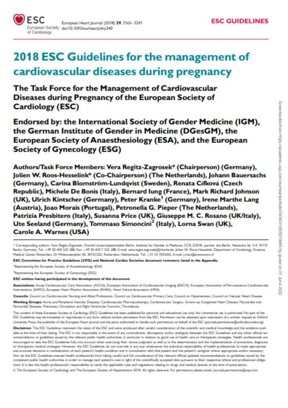 2018 ESC Guidelines for the management of cardiovascular diseases during pregnancy