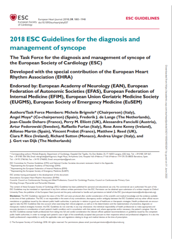 2018 ESC Guidelines for the diagnosis and management of syncope
