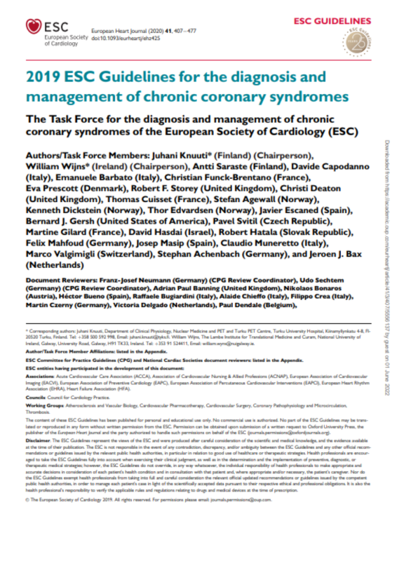 2019 ESC Guidelines for the diagnosis and management of chronic coronary syndromes