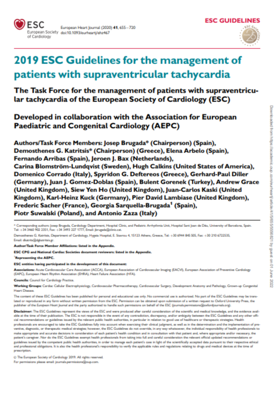 2019 ESC Guidelines for the management of patients with supraventricular tachycardia