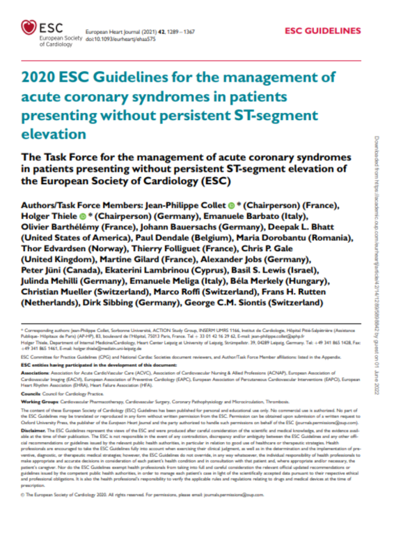 2020 ESC Guidelines for the management of acute coronary syndromes in patients presenting without persistent ST-segment elevation
